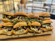 Our venue has mainly indoor seating options, with a ground level, and cosy upstairs. The sun shines in beautifully on nice days, and we have blankets available for those colder ones. Our space while industrial, is designed to capture the beauty of our farming background, and our intentions of how good food should be shared.